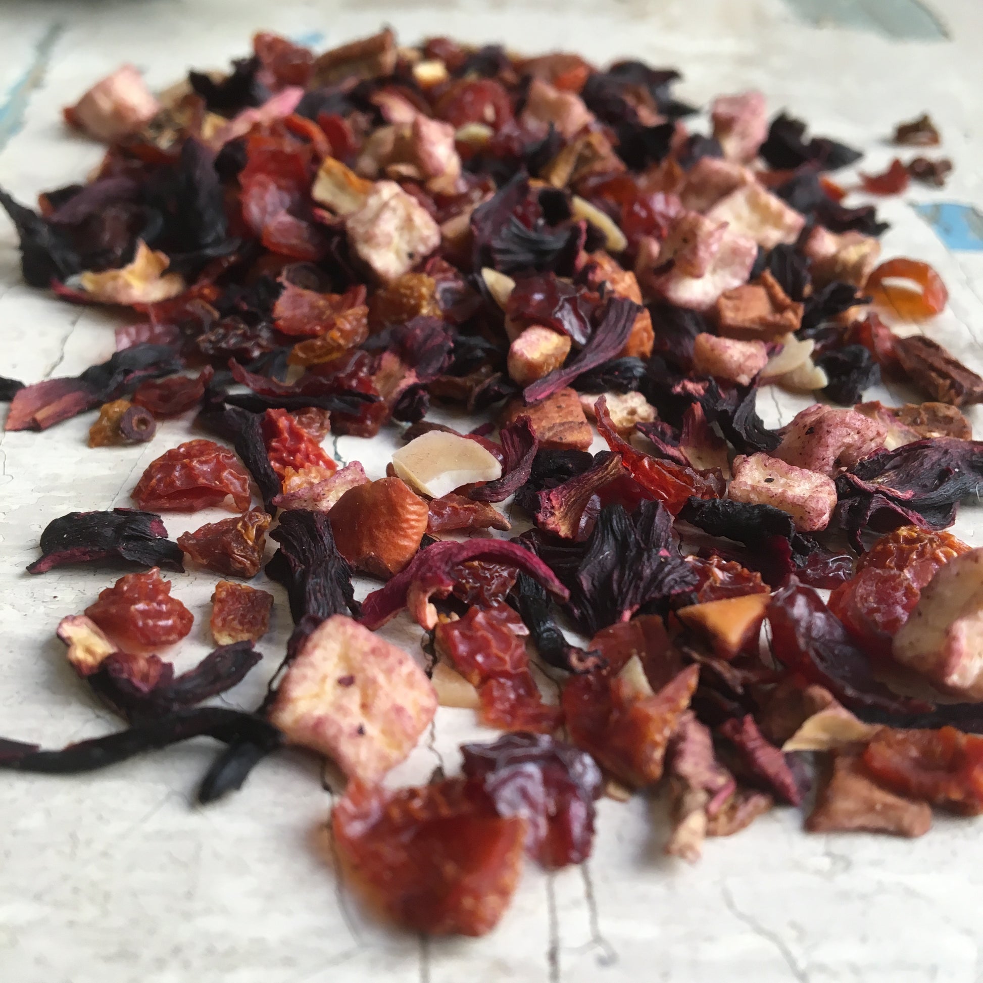 Infúzia čerešní a amaretta. Hromadný produkt. Dostupné v 50 g, 100 g a 65 g téglikoch. Pri nákupe väčšej hmotnosti je potrebné zakúpiť viac jednotiek (v tomto prípade uveďte, ak chcete dostať produkt v samostatných jednotkách, inak bude všetko zabalené v rovnakom vrecku).