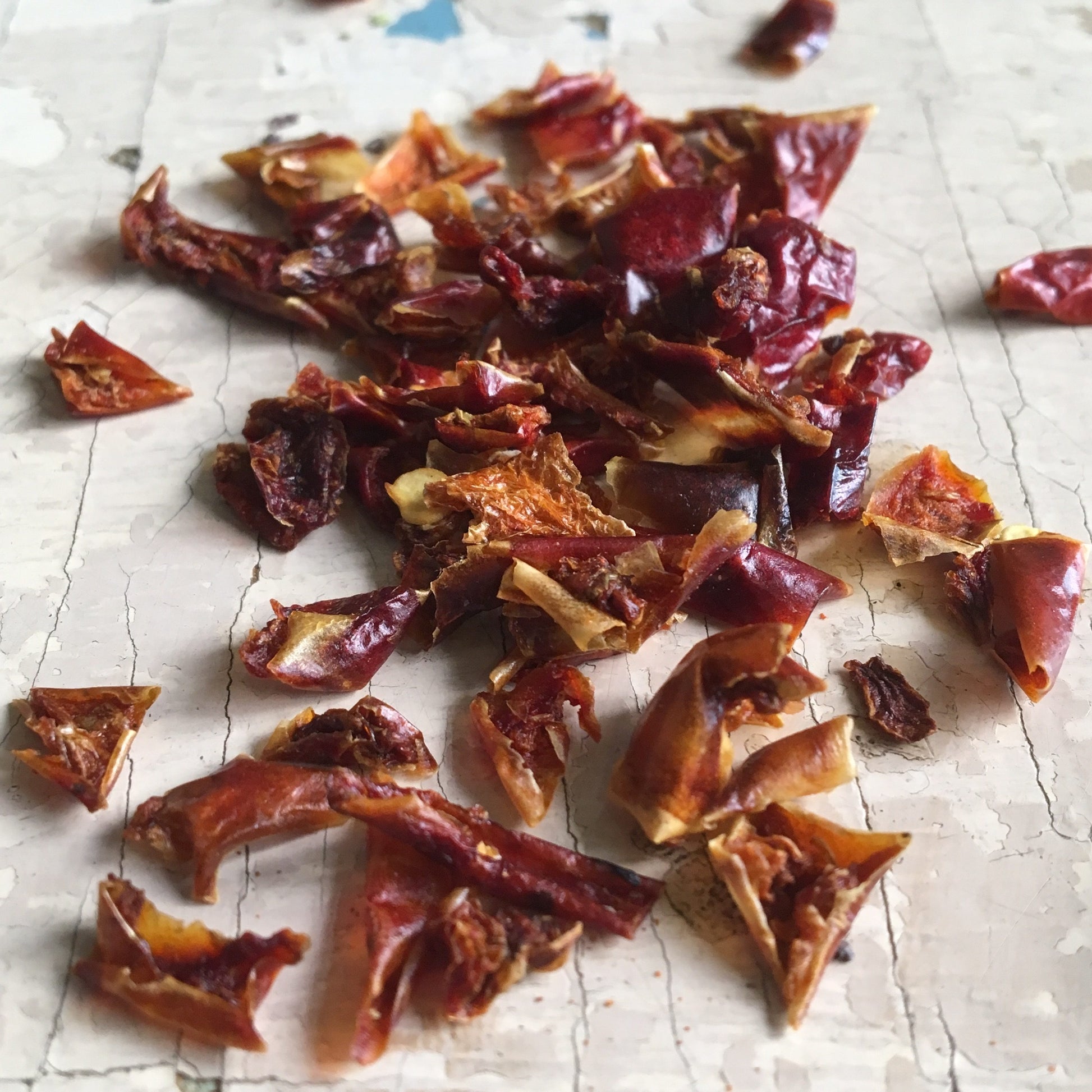 Vločky červenej papriky. Hromadný produkt. Dostupné v 30 g, 50 g, 100 g jednotkách a 20 g téglikoch. Pri nákupe väčšej hmotnosti je potrebné zakúpiť viac jednotiek (v tomto prípade uveďte, ak chcete dostať produkt v samostatných jednotkách, inak bude všetko zabalené v rovnakom vrecku).